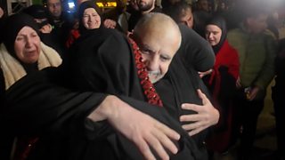 Moment Palestinian hugs her father for the first time