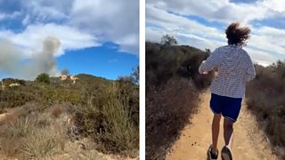 Moment LA hikers run from plume of smoke rising behind them